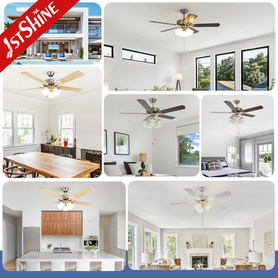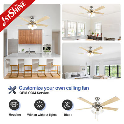 Ретро потолочный вентилятор Тенденция Новый 5 натуральных деревянных лопастей 5 огней Традиционный цепь тяги