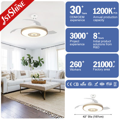 42-дюймовый невидимый потолочный вентилятор с подсветкой для гостиной имеет функцию ночника, и в то же время цвет света может меняться с помощью RGB-многоцветного управления через приложение. Вы также можете подключить телефон для воспроизведения музыки.