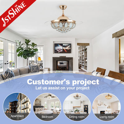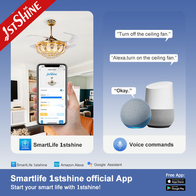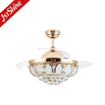42-дюймовый выдвижной потолочный вентилятор с лопастями из ABS-пластика и хрусталем со светодиодной подсветкой