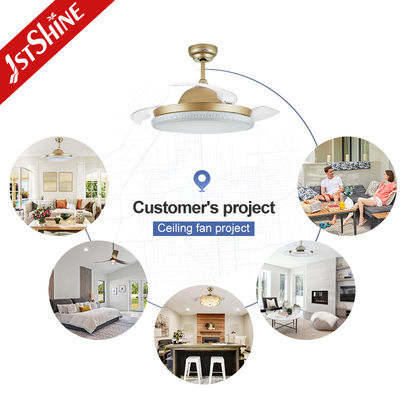 220В 50Гц Свертывающийся потолочный вентилятор с трехцветным светодиодным освещением