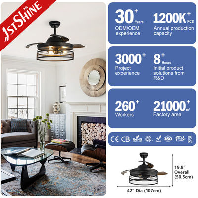 ETL 42-дюймовый потолочный вентилятор в стиле фермерского дома с невидимыми лопастями и подсветкой для спальни